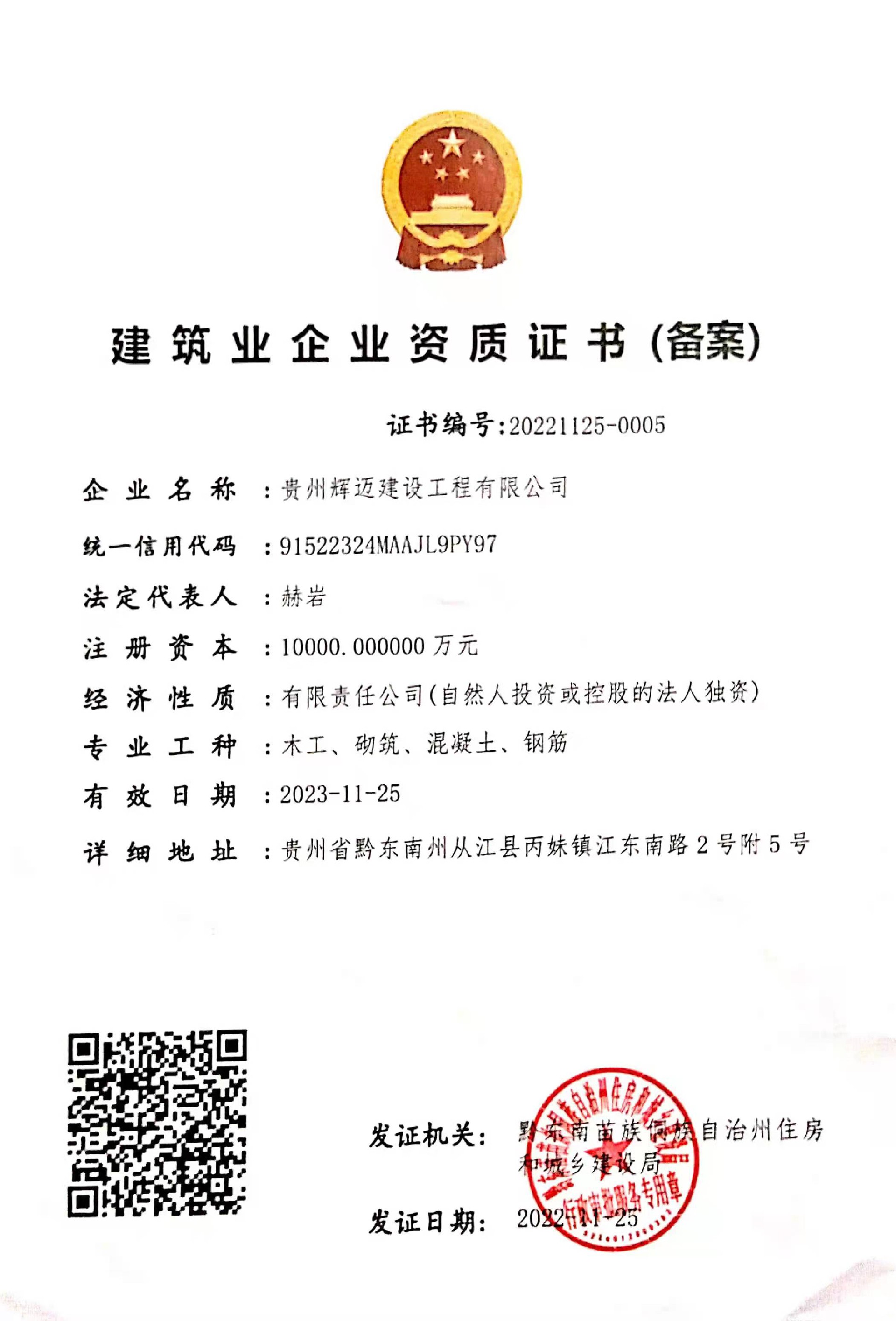 貴州輝邁建設工程有限公司歡迎您工程資質加盟分公司