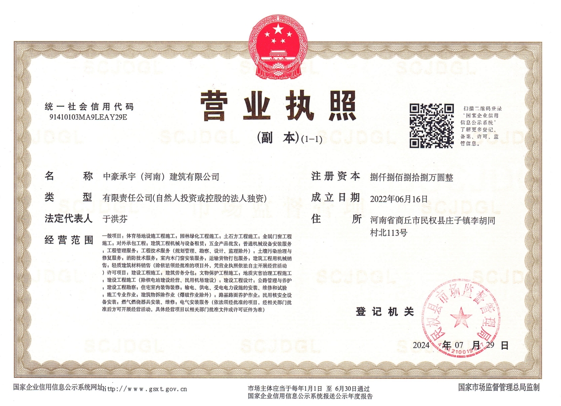 中豪承宇(河南)建筑有限公司歡迎您工程資質加盟分公司 中豪承宇(河南)建筑有限公司備案信息 企查查中豪承宇(河南)建筑有限公司信息查詢 住建部中豪承宇(河南)建筑有限公司資質查詢上一篇:中豪建業(北京)建設有限公司